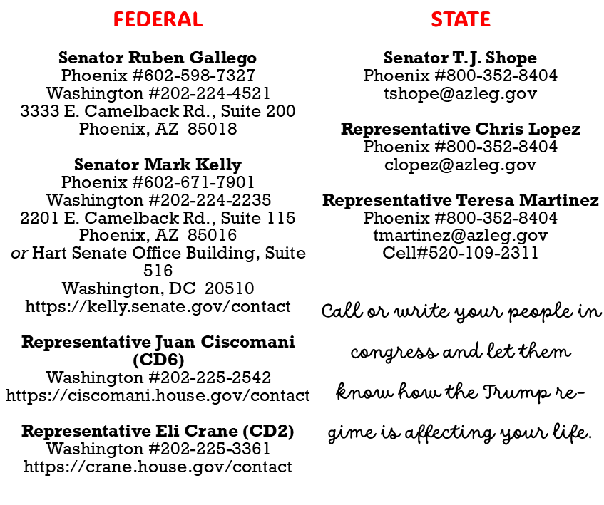If you live in Congressional District 2, please call US Representative Eli Crane @ (202) 225-3361 or (928) 286-5338 or email him @ https://crane.house.gov/contact