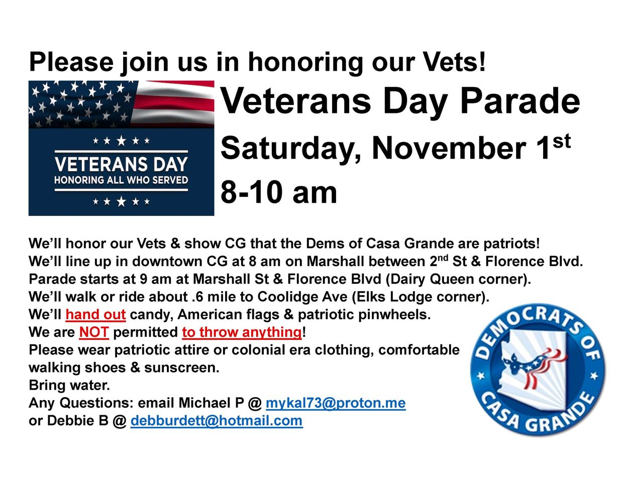 Please email info@demsofcasagrande.org if you are interested in walking the parade!