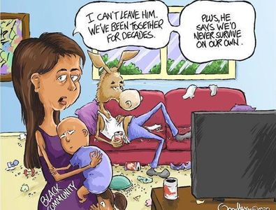 EDITOR'S NOTE: The syndicated cartoon referenced here challenges African Americans' loyalty to the Democratic Party.
